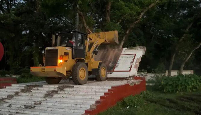তিমির বনিক, স্টাফ রিপোর্টার: মৌলভীবাজারে শেখ মুজিবুর রহমানের ছবি দিয়ে তৈরি করা “বঙ্গবন্ধু ম্যুরাল”টি গুঁড়িয়ে দিয়েছে ছাত্র-জনতা। শুক্রবার (১১ জুলাই) সন্ধ্যায় মৌলভীবাজার সরকারি উচ্চ বিদ্যালয় মাঠের শহীদ মিনার প্রাঙ্গনে অবস্থিত ম্যুরালটি হিন্দুস্তান বুলডোজার দিয়ে গুড়িয়ে উল্লাস করেন সাধারণ মানুষ। এসময় তারা ‘বাংলাদেশের জমি মুজিবের স্থান নেই’ এই স্লোগানে স্লোগান মুখরিত করে তোলেন।ম্যুরাল ভাঙার দৃশ্য উৎসুক জনতা মোবাইল ফোনে দৃশ্য ধারণ করতে দেখা গেছে।