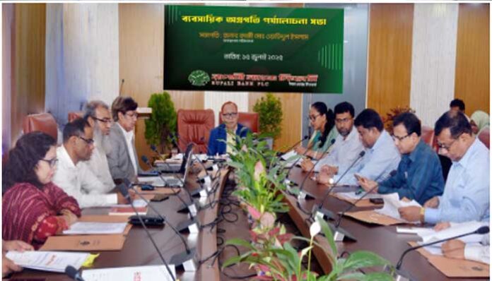 কর্পোরেট ডেস্ক: সরকারী মালিকানাধীন রূপালী ব্যাংক পিএলসি’র ব্যবসায়িক পর্যালোচনা সভা অনুষ্ঠিত হয়েছে। ১৫ জুলাই (মঙ্গলবার) দিলকুশাস্থ ব্যাংকের প্রধান কার্যালয়ের সম্মেলন কক্ষ থেকে ভার্চ্যুয়ালি এ সভা অনুষ্ঠিত হয়।