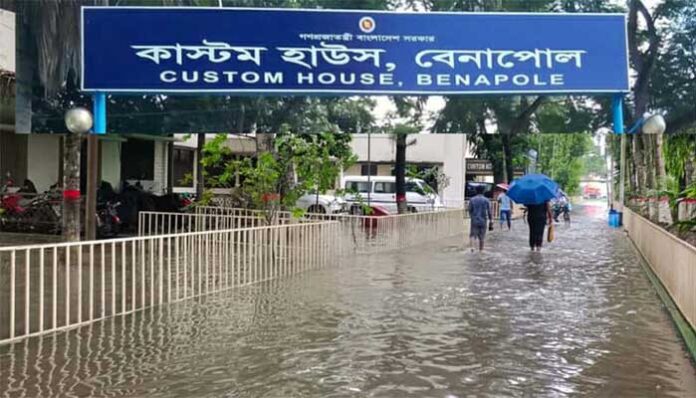 বেনাপোল সিঅ্যান্ডএফ কর্মকর্তা-কর্মচারীরা হাঁটু সমান পানি মাড়িয়ে কাস্টম হাউসে প্রবেশ করছেন। কাস্টমস কর্মকর্তারা গাড়িতে চলাচল করলেও অন্যান্যরা ভ্যান, ইজিবাইকে যাচ্ছে কাস্টমস অফিসে। এতে করে রাজস্ব আদায়ের মতো গুরুত্বপূর্ণ কাজেও ব্যাঘাত ঘটছে বলে জানিয়েছেন সংশ্লিষ্টরা। বৃষ্টির পানি জমে যাওয়ার কারণে বর্তমানে একটি মাত্র সাবমারসিবল মোটরের মাধ্যমে পানি নিষ্কাশনের চেষ্টা করা হচ্ছে। তবে ড্রেনেজ ব্যবস্থা নাজুক থাকায় পর্যাপ্ত পানি বের করে আনা সম্ভব হচ্ছে না।