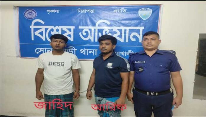 গ্রেপ্তারকৃতরা হলেন, সোনাইমুড়ী পৌরসভার বিজয়নগর গ্রামের জমাদ্দার বাড়ির মৃত জয়নাল আবেদীনের ছেলে আরিফুল ইসলাম আরিফ (৩৩) ও একই পৌরসভার ৫নম্বর ওয়ার্ডের হাবীব উল্যাহ দরবেশ বাড়ির মো.মকবুল আহমদের ছেলে জাহিদুল ইসলাম হৃদয় (২৬)।