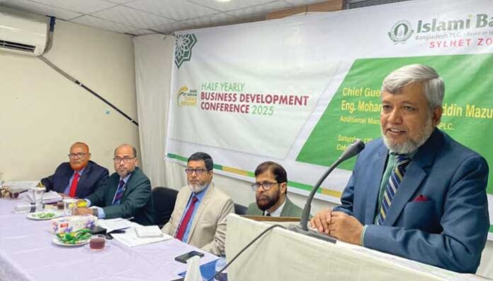 কর্পোরেট ডেস্ক: ইসলামী ব্যাংক বাংলাদেশ পিএলসির সিলেট জোনের অর্ধ-বার্ষিক ব্যবসায় উন্নয়ন সম্মেলন সম্প্রতি ব্যাংকের সিলেট জোনাল অফিসের কনফারেন্স হলে অনুষ্ঠিত হয়েছে। ব্যাংকের অ্যাডিশনাল ম্যানেজিং ডাইরেক্টর মোহাম্মদ জামাল উদ্দিন মজুমদার সম্মেলনে প্রধান অতিথি হিসেবে বক্তব্য দেন। এতে বিশেষ অতিথি হিসেবে বক্তব্য দেন ডেপুটি ম্যানেজিং ডাইরেক্টর মাহমুদুর রহমান। সিলেট জোনপ্রধান মোঃ রেজাউল ইসলামের সভাপতিত্বে সম্মেলনে জোনের অধীন শাখাসমূহের প্রধান, নির্বাহী ও কর্মকর্তাবৃন্দ অংশগ্রহণ করেন।