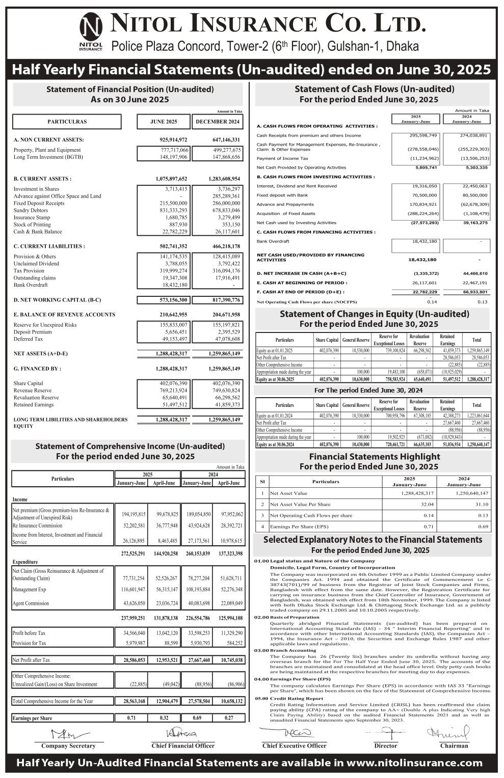 Half Yearly Financial Statements of Nitol Insurance Company Ltd.