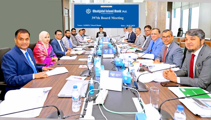 কর্পোরেট ডেস্ক: শাহ্জালাল ইসলামী ব্যাংক পিএলসির পরিচালক পর্ষদের ৩৯৭তম সভা বুধবার (৩০ জুলাই, ২০২৫) ব্যাংকের কর্পোরেট প্রধান কার্যালয়ের পর্ষদ সভাকক্ষে অনুষ্ঠিত হয়। ব্যাংকের পরিচালক পর্ষদের চেয়ারম্যান এ. কে. আজাদ সভায় সভাপতিত্ব করেন। সভায় বেশ কিছু সংখ্যক বিনিয়োগ প্রস্তাব অনুমোদন দেয়া হয়।