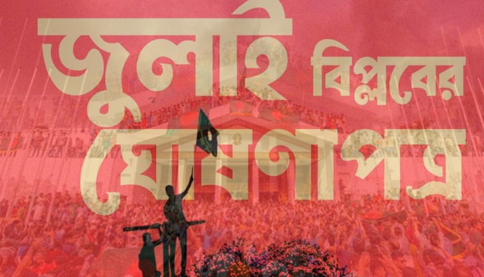 সোমবার (৪ আগস্ট) প্রধান উপদেষ্টার প্রেস উইং জানিয়েছে, প্রধান উপদেষ্টা প্রফেসর মুহাম্মদ ইউনূস বিকাল ৫টায় জাতীয় সংসদের দক্ষিণ প্লাজায় জুলাই ঘোষণাপত্র পাঠ করবেন। বাংলাদেশ টেলিভিশন অনুষ্ঠানটি সরাসরি সম্প্রচার করবে।এ উপলক্ষ্যে রাজধানীর মানিক মিয়া অ্যাভিনিউয়ে দিনব্যাপী সাংস্কৃতিক অনুষ্ঠান এবং ড্রোন শো অনুষ্ঠিত হবে। সংস্কৃতি বিষয়ক মন্ত্রণালয়ের উদ্যোগে এ অনুষ্ঠা বেলা ১১টায় শুরু হয়ে রাত প্রায় ১২টা পর্যন্ত চলবে।