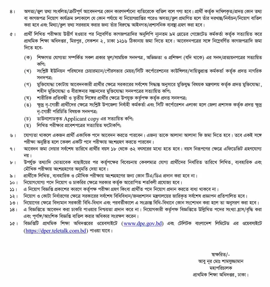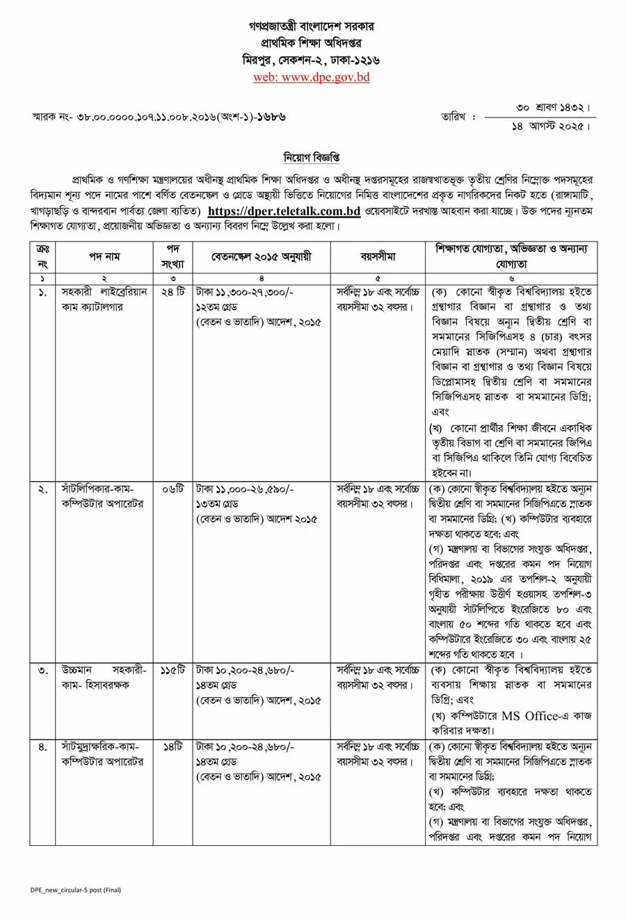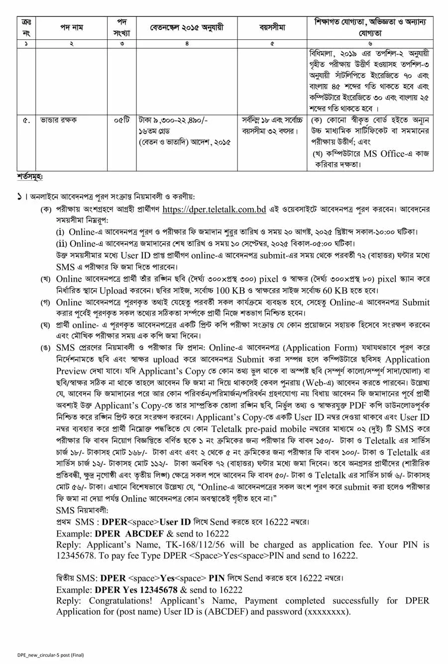 আবেদনের প্রক্রিয়া: আগ্রহী প্রার্থীরা dper.teletalk.com.bd ওয়েবসাইটের মাধ্যমে অনলাইনে আবেদন করতে পারবেন।