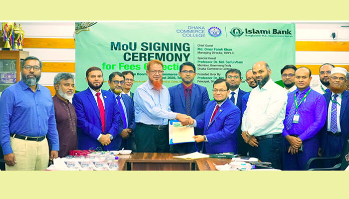 কর্পোরেট ডেস্ক: ইসলামী ব্যাংক বাংলাদেশ পিএলসি ও ঢাকা কমার্স কলেজ-এর মধ্যে মঙ্গলবার (২৬ আগস্ট) একটি কর্পোরেট চুক্তি স্বাক্ষরিত হয়েছে। এর ফলে এ কলেজের শিক্ষার্থীরা সকল একাডেমিক ফি সরাসরি ইসলামী ব্যাংকের যেকোনো শাখা, উপশাখা ও এজেন্ট আউটলেট এবং অনলাইনে সেলফিন ও এম-ক্যাশের মাধ্যমে জমা দিতে পারবে।