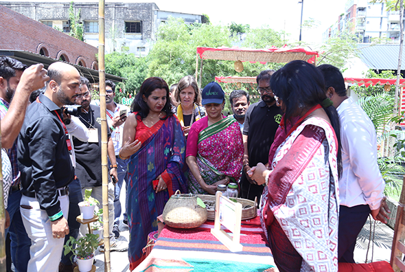 বিকালে উদ্ভাবন ও সৃজনশীলতার ওপর আলোকপাত করা হয়। ‘ক্লাইমেট ইনোভেশন স্পটলাইট’ শীর্ষক আয়োজনে নবায়নযোগ্য জ্বালানি, টেকসই কৃষি, বর্জ্য ব্যবস্থাপনা এবং দুর্যোগকালীন পূর্ব সতর্কীকরণ ব্যবস্থা বিষয়ে স্থানীয় উদ্ভাবক, স্টার্টআপ, বিশ্ববিদ্যালয় এবং মাঠকর্মীদের বিভিন্ন উদ্যোগ তুলে ধরা হয়। দিনের অন্যতম প্রধান আকর্ষণ ছিল ‘থ্রেডস অফ দ্য আর্থ’ শীর্ষক টেকসই ফ্যাশনের একটি ব্যতিক্রমী প্রদর্শনী। এতে কবিতা, কোরিওগ্রাফি এবং ভিজ্যুয়াল উপস্থাপনার সঙ্গে প্রাকৃতিক কাপড়, রিসাইকেল করা ডিজাইন এবং ঐতিহ্যবাহী বুননের সমন্বয় ঘটানো হয়। প্রতিটি পোশাক যেন দৃঢ়তা এবং স্থায়িত্বের গল্প বলছিল।