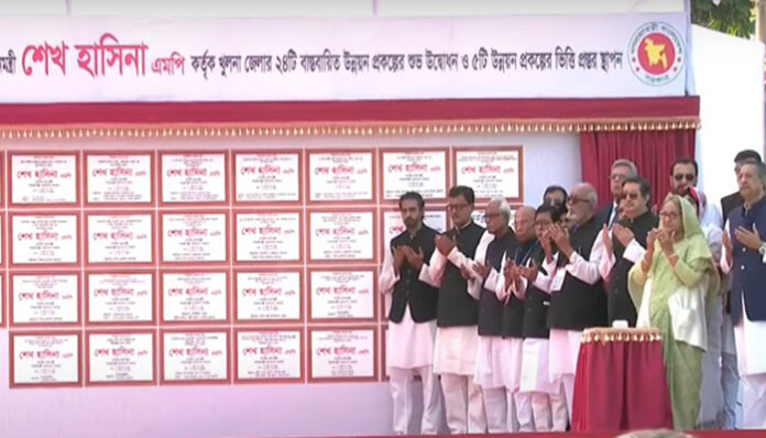 কর্পোরেট সংবাদ ডেস্ক : খুলনায় ২৯টি উন্নয়ন প্রকল্পের উদ্বোধন ও ভিত্তিপ্রস্তর স্থাপন করেছেন প্রধানমন্ত্রী শেখ হাসিনা। সোমবার (১৩ নভেম্বর) খুলনা সার্কিট হাউস মাঠে এক মহাসমাবেশে সম্পন্ন হওয়া ২৪টি উন্নয়ন প্রকল্পের উদ্বোধন এবং আরও পাঁচটি প্রকল্পের ভিত্তিপ্রস্তর স্থাপন করেন তিনি।