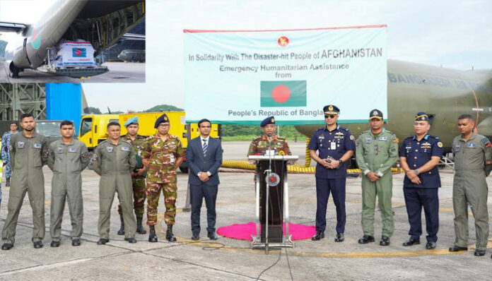 আন্তঃবাহিনী জনসংযোগ পরিদপ্তর (আইএসপিআর) এক সংবাদ বিজ্ঞপ্তিতে জানিয়েছে, প্রধান উপদেষ্টার নির্দেশে ভূমিকম্পে সৃষ্ট আকস্মিক দুর্যোগ মোকাবেলায় আফগান জনগণের জন্য বাংলাদেশ সরকারের পক্ষ থেকে জরুরি মানবিক সহায়তা প্রদানের উদ্যোগ নেওয়া হয়েছে। এরই ধারাবাহিকতায় সকাল ৮টায় বাংলাদেশ বিমান বাহিনীর একটি পরিবহন বিমান জরুরি ত্রাণ সামগ্রী নিয়ে কাবুলের উদ্দেশ্যে রওনা হয়েছে।