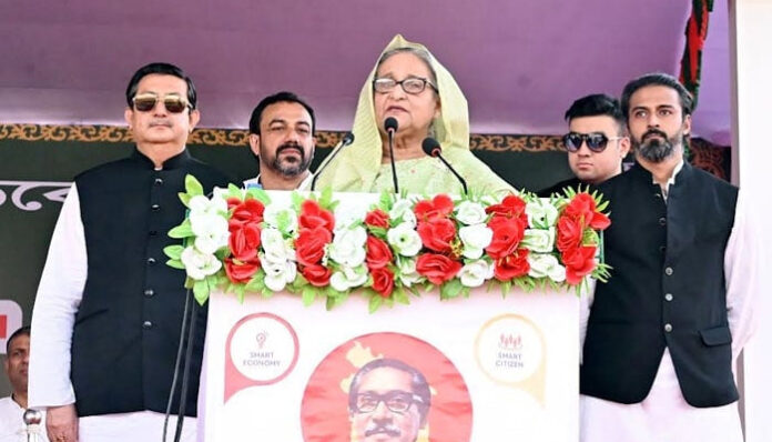 সোমবার (১৩ নভেম্বর) বিকেলে খুলনা সার্কিট হাউস মাঠে খুলনা মহানগর ও জেলা আওয়ামী লীগ আয়োজিত এক মহাসমাবেশে প্রধান অতিথির ভাষণে একথা বলেন প্রধানমন্ত্রী শেখ হাসিনা।