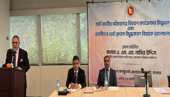বৃহস্পতিবার (১১ সেপ্টেম্বর) ঢাকায় প্রাপ্ত এক তথ্যবিবরণীতে জানানো হয়, সম্প্রতি বাংলাদেশ কনস্যুলেট জেনারেল, টরন্টো আয়োজিত ‘স্মার্ট জাতীয় পরিচয়পত্র বিতরণের কার্যক্রমের উদ্বোধন এবং প্রবাসীদের ভোট প্রদানে উদ্বুদ্ধকরণ’ বিষয়ক আলোচনা অনুষ্ঠানে বাংলাদেশি প্রবাসীদের সাথে মতবিনিময়কালে তিনি এসব কথা বলেন।