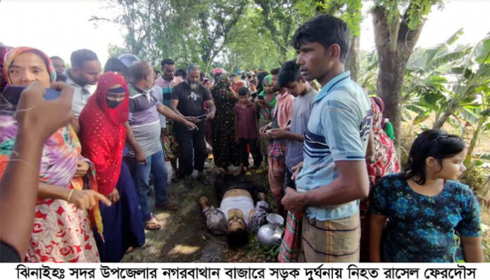 মঙ্গলবার দুপুরে ঝিনাইদহ-চুয়াডাঙ্গা মহাসড়কে এই দুর্ঘটনা ঘটে। নিহত রাসেল ফেরদৌস শৈলকুপা উপজেলার ভাটই বাজার এলাকার তোফাজ্জেল হোসেনের ছেলে।