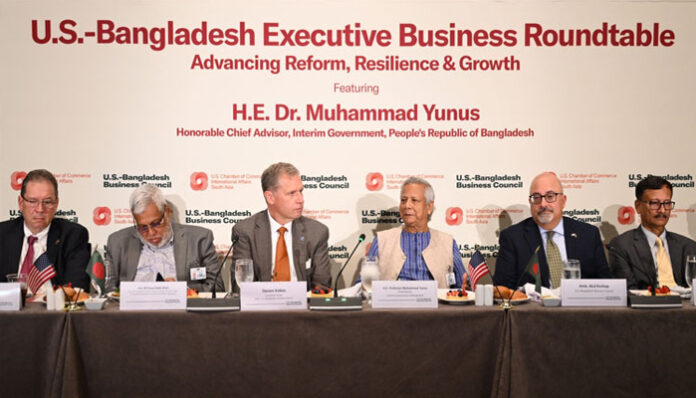 প্রধান উপদেষ্টা অনুষ্ঠানে মেটলাইফ, শেভরন এবং এক্সেলেরেটসহ শীর্ষ মার্কিন কোম্পানিগুলোকে বাংলাদেশে নতুন বিনিয়োগের সুযোগ কাজে লাগানোর আহ্বান জানান।
