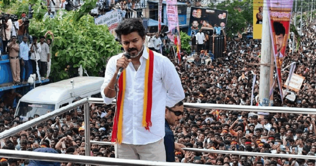 জেলা প্রশাসন কারুর-ইরোড মহাসড়কের ভেলুসামাইপুরামে থালাপতি বিজয়ের ‘ভেলিচাম ভেলিয়েরু’ নামের এক জনসভায় হাজার হাজার মানুষ জড়ো হয়েছিলেন। তিনি বক্তব্য দেয়ার সময় এই বিশৃঙ্খল পরিস্থিতি তৈরি হয়। একপর্যায়ে তিনি বক্তৃতা বন্ধ করতে বাধ্য হন।