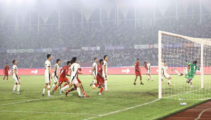 বৃহস্পতিবার (৯ অক্টোবর) ঢাকা জাতীয় স্টেডিয়ামে অনুষ্ঠিত ম্যাচে দ্বিতীয়ার্ধে গোল হয়েছে পাঁচটি। এর আগে ১-১ গোলে সমতা নিয়ে বিরতিতে গিয়েছিল দু’দল। ইনজুরি টাইমে শমিত সোমের গোলে ৩-৩’এ সমতা ফিরিয়ে লড়াই জমিয়ে তুলেছিল বাংলাদেশ। কিন্তু আবারো সেই শেষ মুহূর্তের গোল হজমে বাংলাদেশকে মাথা নত করেই মাঠ ছাড়তে হয়েছে।