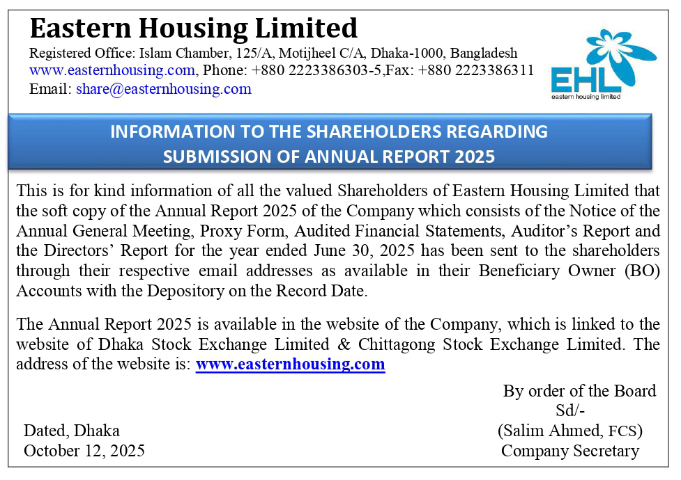 Homeপ্রাইস সেনসিটিভ ইনফরমেশনInformation to the Shareholders of Eastern Housing Ltd.