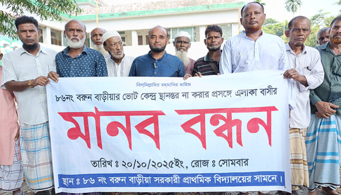 বক্তারা আরও বলেন, বরুন বাড়ীয়া সরকারি প্রাথমিক বিদ্যালয় ভোটকেন্দ্রটি ২নং ওয়ার্ডের মধ্যবর্তী স্থানে অবস্থিত। এখানে পাকা বহুতল ভবন, প্রশস্ত আঙিনা ও প্রধান সড়কের সংযোগ থাকায় নারী, বৃদ্ধ ও সাধারণ ভোটারদের জন্য এটি সবচেয়ে উপযুক্ত স্থান।