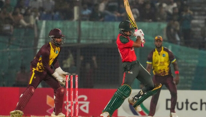 স্পোর্টস ডেস্ক : হার দিয়ে ওয়েস্ট ইন্ডিজের বিপক্ষে তিন ম্যাচের টি-টোয়েন্টি সিরিজ শুরু করল স্বাগতিক বাংলাদেশ। সোমবার (২৭ অক্টোবর) সিরিজের প্রথম টি-টোয়েন্টিতে ওয়েস্ট ইন্ডিজের কাছে ১৬ রানে হেরেছে টাইগাররা। ফলে সিরিজে ১-০ ব্যবধানে পিছিয়ে পড়ল বাংলাদেশ।