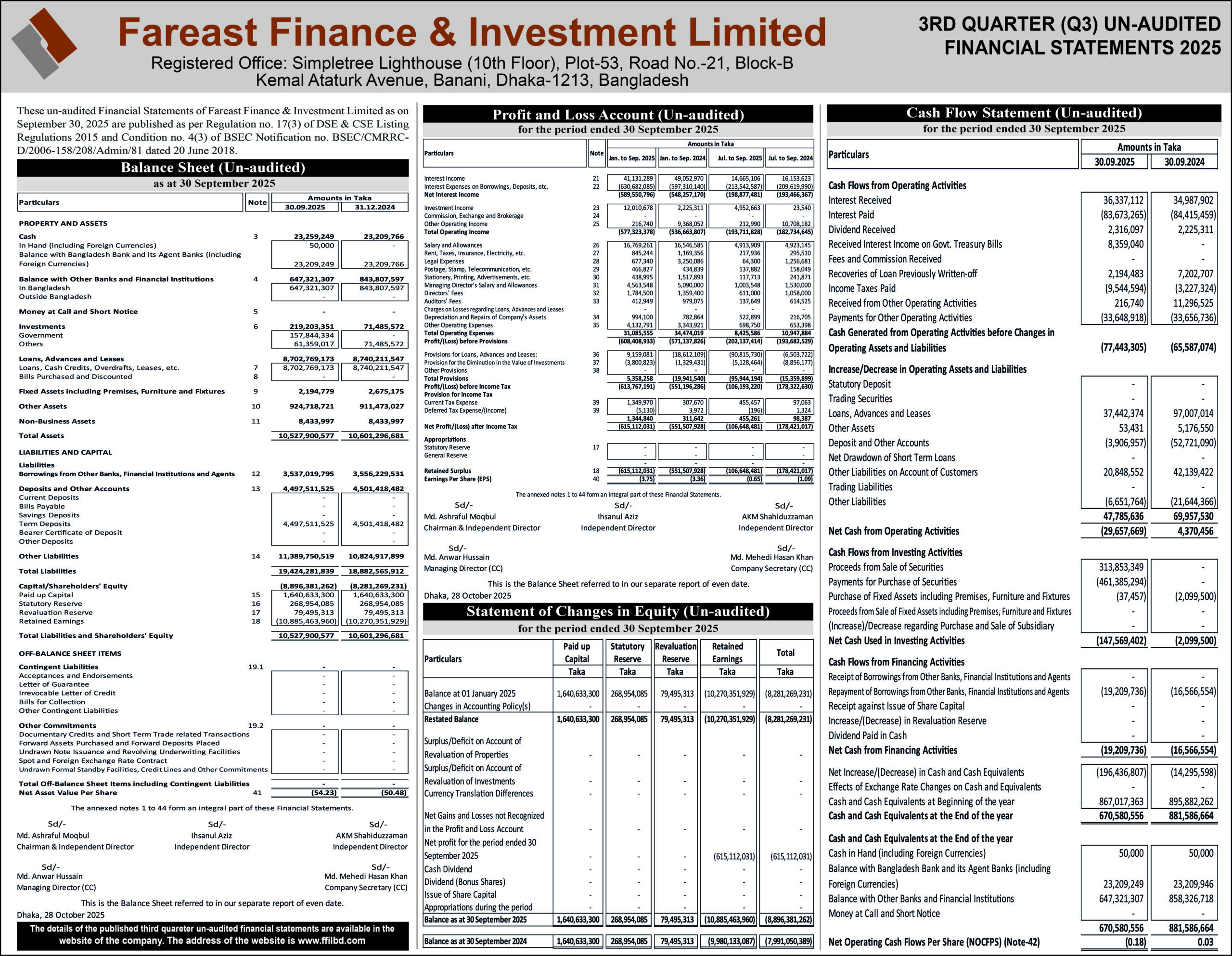 Homeপ্রাইস সেনসিটিভ ইনফরমেশন3rd Quarter Un-Audited Financial Statements of Fareast Finance & Investment Ltd.