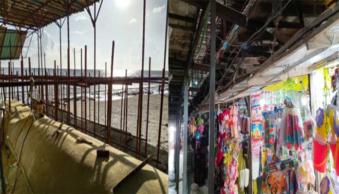 তথ্য সূত্রে জানা যায়, কুয়াকাটা সৈকতের জিরো পয়েন্টের পশ্চিম পাসে এই মার্কেটটির স্থাপনায় সাগরের জোয়ারের পানিতে ঝাপটা দেয়। অস্বাভাবিক জোয়ারে সৃষ্ট জলোচ্ছাস তান্ডব চালায়। এ কারণে ওই মার্কেটের দোকানিরাও ধসে বড় ধরণের দূর্ঘটনার আশঙ্কা করছেন। নাম প্রকাশ না করার শর্তে একাধিক দোকানি জানান, বর্ষা মৌসুমে জোয়ারের ঢেউ এসে প্রবলবেগে ঝাপটা দেয়। ভয় লাগে। স্থানীয় বাসিন্দারা মনে করেন, ‘এই বুঝি সব ভেসে গেল।’ তবে কুয়াকাটার একাধিক পরিবেশ কর্মী প্রশ্ন করেছেন হাইকোর্টের রিটে নিষেধাজ্ঞা থাকলে বেড়িবাঁধের বাইরে কীভাবে সৈকতের মধ্যে এমনসব স্থাপনা থাকছে।