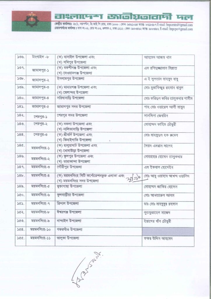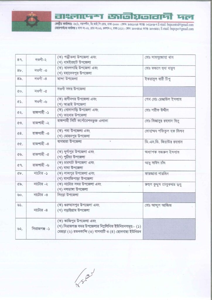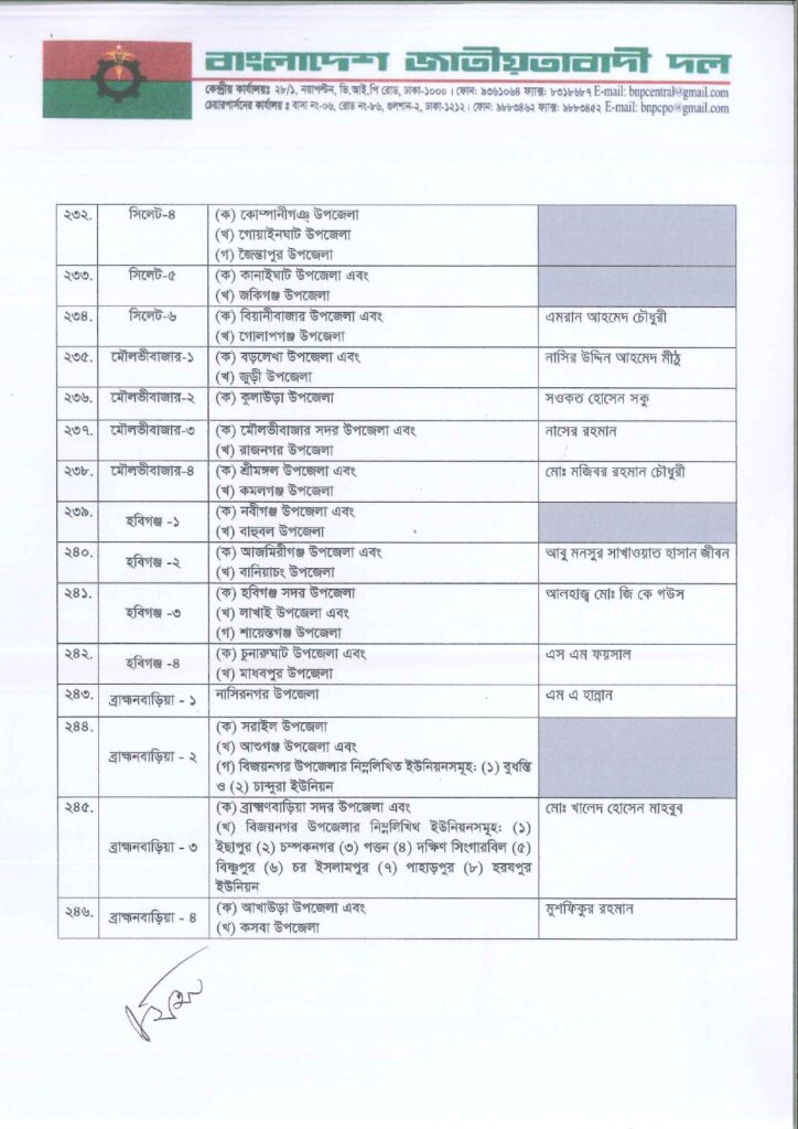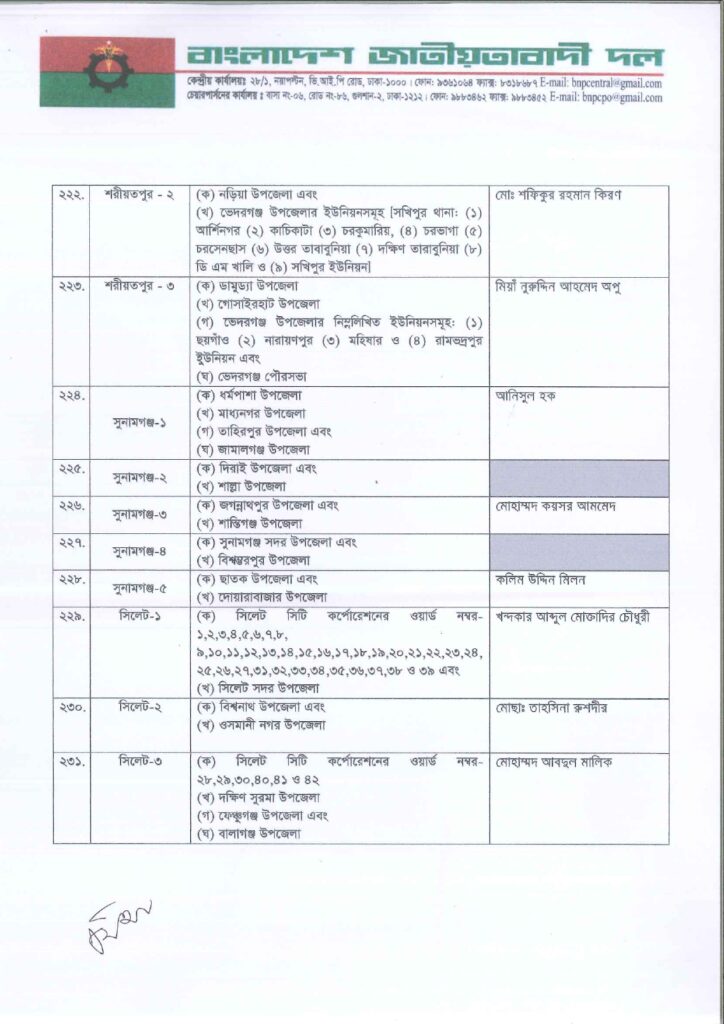 নিজস্ব প্রতিবেদক: আসন্ন ত্রয়োদশ জাতীয় সংসদ নির্বাচনে ২৩৭ আসনে সম্ভাব্য চূড়ান্ত প্রার্থী ঘোষণা করছে বাংলাদেশ জাতীয়তাবাদী দল বিএনপি।