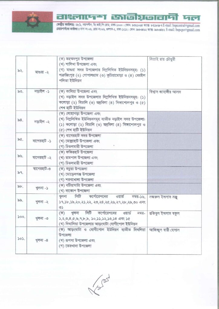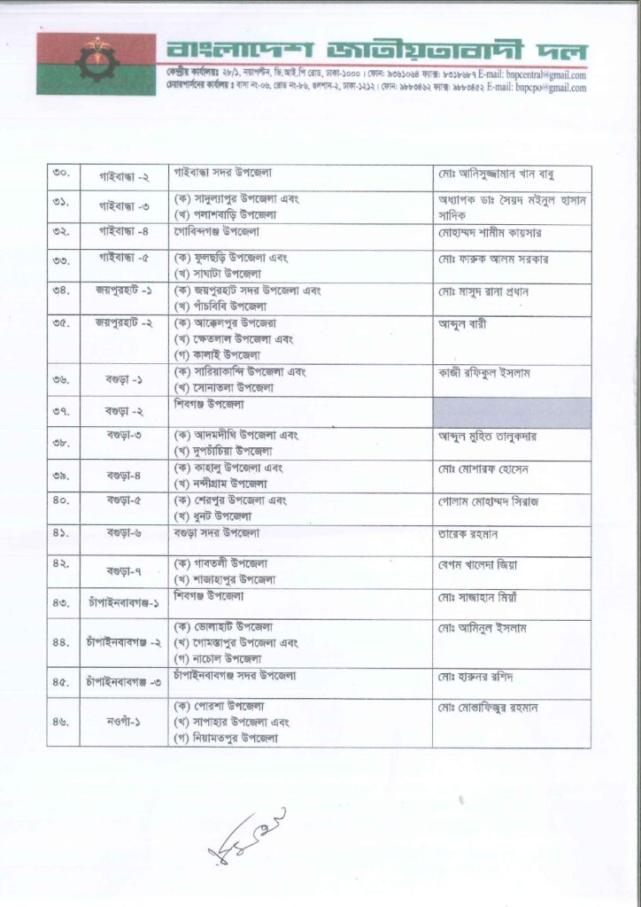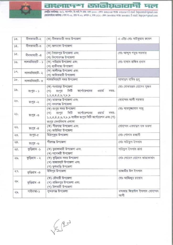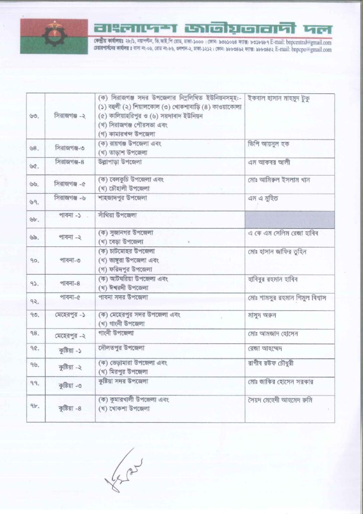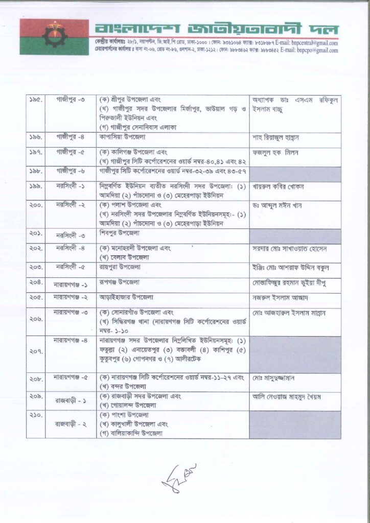 নিজস্ব প্রতিবেদক: আসন্ন ত্রয়োদশ জাতীয় সংসদ নির্বাচনে ২৩৭ আসনে সম্ভাব্য চূড়ান্ত প্রার্থী ঘোষণা করছে বাংলাদেশ জাতীয়তাবাদী দল বিএনপি।