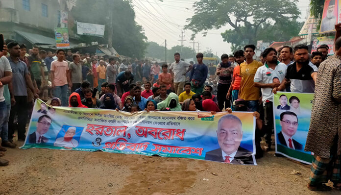 শহীদুজ্জামান শিমুল, সাতক্ষীরা প্রতিনিধি: সাতক্ষীরা-৩ (কালিগঞ্জ-আশাশুনি) আসনে কেন্দ্রীয় বিএনপির সদস্য ডা. শহিদুল আলম মনোনয়ন না পাওয়ায় সাতক্ষীরার নলতায় মঙ্গলবার অর্ধ-দিবস হরতাল পালিত হয়েছে। এ ছাড়া নলতা হাসপাতাল মোড় অবরোধ করে বেলা ১১টায় বিক্ষোভ মিছিল ও প্রতিবাদ সমাবেশ করে ডা. শহিদুল আলমের সমর্থকেরা। তবে ঘন্টাব্যাপী সড়ক অবরোধে দীর্ঘ যানজট তৈরি হয় সাতক্ষীরা-মুন্সিগঞ্জ সড়কে। এতে জনভোগান্তি চরমে উঠে।