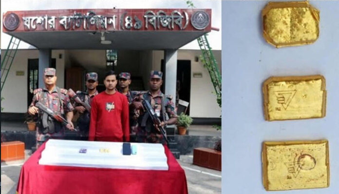 বিজিবি সূত্রে জানা যায়, গোপন সংবাদের ভিত্তিতে যশোর ব্যাটালিয়নের একটি টহলদল যশোর–নড়াইল মহাসড়কের রয়টোকা বাজার এলাকায় অবস্থান নেয়। এ সময় সন্দেহভাজন এক ব্যক্তিকে আটক করে তল্লাশি চালালে তার প্যান্টের পকেটের ভেতর বিশেষ কায়দায় লুকানো অবস্থায় তিনটি স্বর্ণের বার উদ্ধার করা হয়। উদ্ধারকৃত স্বর্ণের মোট ওজন ৩১৯.৪৮ গ্রাম।চাকরির খবর