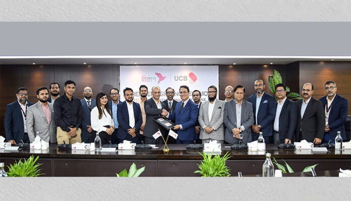 সম্প্রতি ইউসিবির করপোরেট প্রধান কার্যালয়ে এক অনুষ্ঠানে এ সংক্রান্ত সমঝোতা স্মারক (এমওইউ) বিনিময় হয়। ইউসিবির অতিরিক্ত ব্যবস্থাপনা পরিচালক আদনান মাসুদ এবং বিকাশের চিফ ফাইন্যান্সিয়াল অফিসার মইনুদ্দিন মোহাম্মদ রাহগির এই চুক্তিতে স্বাক্ষর করেন।