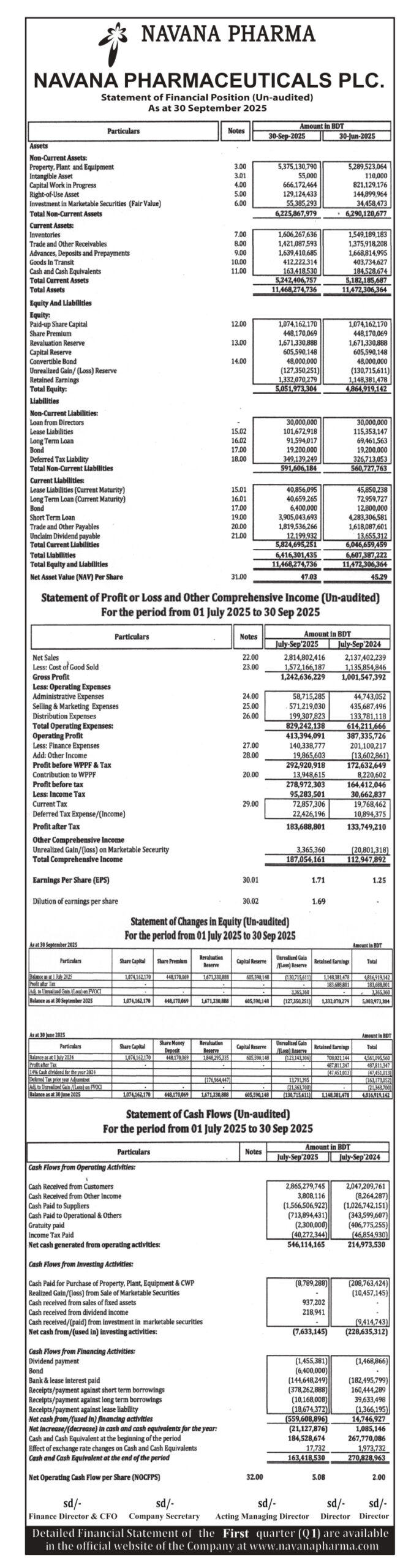 Homeপ্রাইস সেনসিটিভ ইনফরমেশনStatements of Financial Position (Un-Audited) of Navana Pharmaceuticals PLC.