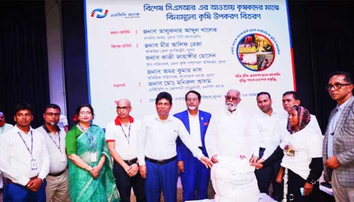 এনসিসি ব্যাংকের এসইভিপি ও কোম্পানী সেক্রেটারী মোঃ মনিরুল আলম এর সভাপতিত্বে খুলনা সিটি কর্পোরেশন এর মেয়র তালুকদার আব্দুল খালেক প্রধান অতিথি হিসেবে উপস্থিত থেকে প্রান্তিক কৃষকের মাঝে বিভিন্ন প্রকারের কৃষি বীজ, সার ও কীটনাশক বিতরণ করেন।