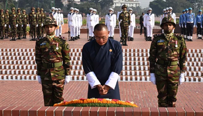 কর্পোরেট সংবাদ ডেস্ক: দুই দিনের রাষ্ট্রীয় সফরে ঢাকায় এসে পৌঁছানোর পরপরই সাভারের জাতীয় স্মৃতিসৌধে পুষ্পস্তবক অর্পণ করে মহান মুক্তিযুদ্ধের শহীদদের প্রতি শ্রদ্ধা নিবেদন করেন ভুটানের প্রধানমন্ত্রী শেরিং তোবগে। স্মৃতিসৌধের বেদিতে পুষ্পস্তবক অর্পণের পর তিনি ১৯৭১ সালের মহান মুক্তিযুদ্ধে শহীদদের স্মরণে কয়েক মিনিট নীরবে দাঁড়িয়ে থাকেন।