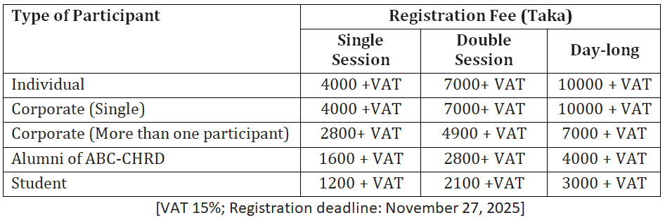 উক্ত সেমিনারে অংশগ্রহনের জন্য জনপ্রতি নিবন্ধন ফি: