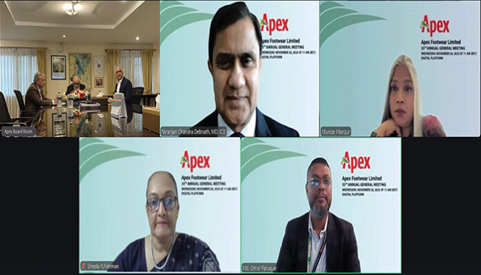 কর্পোরেট ডেস্ক: এপেক্স ফুটওয়্যার লিমিটেড এর ৩৫তম বার্ষিক সাধারণ সভা ডিজিটাল প্ল্যাটফর্ম এর মাধ্যমে বুধবার (২৬ নভেম্বর) অনুষ্ঠিত হয়।