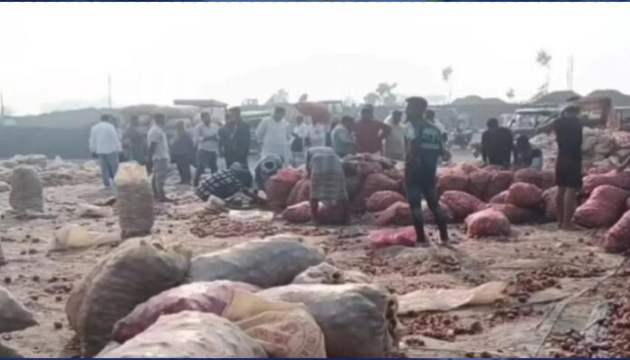 মনির হোসেন, বেনাপোল প্রতিনিধি: বাংলাদেশের বাজারে স্থানীয় কৃষকদের স্বার্থ রক্ষায় সরকার ভারত থেকে পেঁয়াজ আমদানি বন্ধ রাখার সিদ্ধান্ত নেওয়ার পর চরম বিপর্যয়ের মুখে পড়েছেন পশ্চিমবঙ্গ ও মহারাষ্ট্রের রপ্তানিকারকরা। সীমান্তে আটকে থাকা প্রায় ৩০ হাজার টন পেঁয়াজ দ্রুত নষ্ট হতে শুরু করেছে। ফলে নাসিক থেকে ১৬ রুপি কেজি দরে কিনে পরিবহনসহ ২২ রুপি খরচ করে সীমান্তে আনা সেই পেঁয়াজ এখন মাত্র ২ রুপি কেজিতে ‘পানির দরে’ বিক্রি করতে বাধ্য হচ্ছেন ব্যবসায়ীরা।