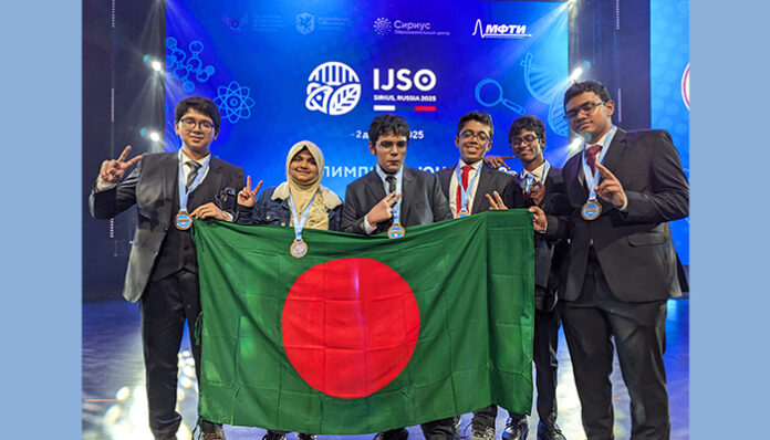 কর্পোরেট ডেস্ক: ২২তম আর্ন্তজাতিক জুনিয়র সায়েন্স অলিম্পিয়াড-এ (আইজেএসও-২০২৫) বাংলাদেশ দল ৬টি ব্রোঞ্জ পদক অর্জন করেছে। আন্তর্জাতিক জুনিয়র সায়েন্স অলিম্পিয়াডের বাংলাদেশ দলের টাইটেল স্পন্সর আল-আরাফাহ্ ইসলামী ব্যাংক।
