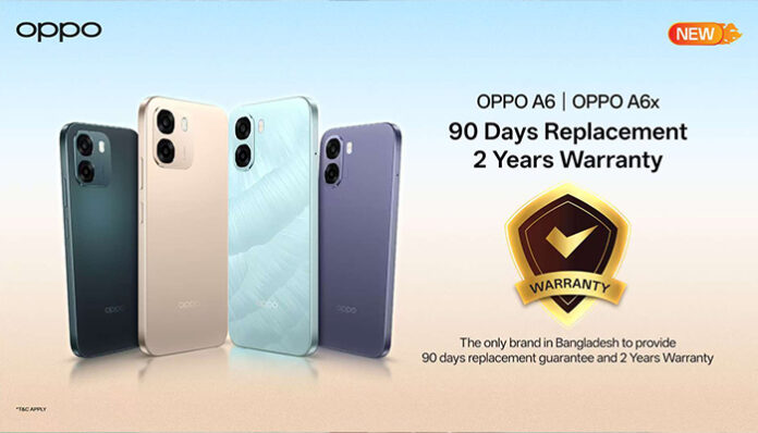 বাংলাদেশে প্রথমবারের মতো অপো এ৬ বা এ৬এক্স কেনা ক্রেতারা সম্পূর্ণ ৯০ দিনের রিপ্লেসমেন্ট সাপোর্ট উপভোগ করতে পারবেন। যা আগে কখনও পাওয়া যায়নি এমন মানসিক প্রশান্তি দেবে। নজিরবিহীন এ উদ্যোগটি দেশে বিক্রয়-পরবর্তী সেবার নতুন মান নির্ধারণ করেছে এবং গুণগত মান ও গ্রাহক-কেন্দ্রিক উদ্ভাবনের প্রতি অপোর দৃঢ় অঙ্গীকার প্রকাশ করেছে। দুই বছরের বর্ধিত ওয়ারেন্টি এই উদ্যোগকে আরও শক্তিশালী করেছে। নিজেদের নতুন এ-সিরিজ ডিভাইসের স্থায়িত্ব ও পারফরম্যান্সের ক্ষেত্রে অপোর গভীর আত্মবিশ্বাসের বহিঃপ্রকাশ এই উদ্যোগ।