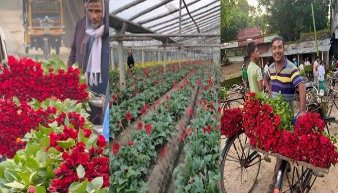 শীত উপেক্ষা করে কাকডাকা ভোর থেকে মহাসড়কের দু’পাশে জমে ওঠে রঙের হাট। ফুলচাষিরা বাইসাইকেল, ভ্যান, বা মোটরসাইকেলের পেছনে করে নিয়ে এসেছেন তাজা গোলাপ, জারবেরা, গাঁদা, গ্ল্যাডিওলাস আর রজনীগন্ধার সুবিশাল পসরা। দূর-দূরান্ত থেকে আসা পাইকারদের হাঁকডাক, দর কষাকষি আর ফুলের সুবাসে বাতাস হয়ে ওঠে ম ম। এটি শুধু একটি বাজার নয়, এ যেন জাতীয় উৎসবের ডালি সাজানোর এক বিশাল কর্মযজ্ঞ।