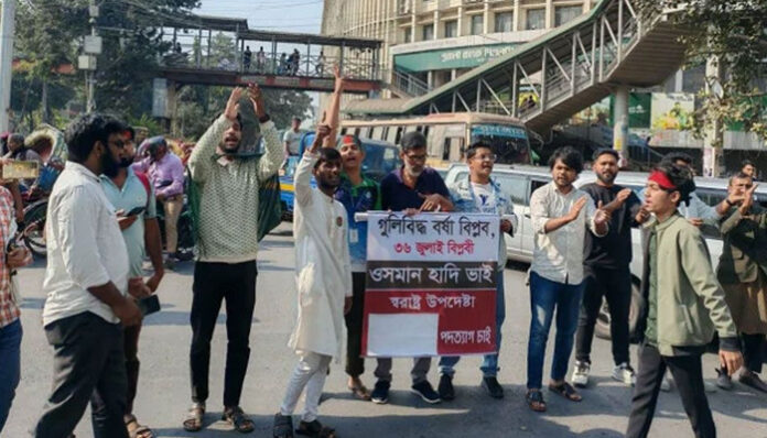 নিজস্ব প্রতিবেদক : ইনকিলাব মঞ্চের মুখপাত্র ও ঢাকা-৮ আসনের সম্ভাব্য স্বতন্ত্র প্রার্থী ওসমান হাদির হামলাকারীদের গ্রেপ্তারে ব্যর্থতার দায়ে স্বরাষ্ট্র উপদেষ্টার পদত্যাগ চেয়ে রাজধানীর শাহবাগ অবরোধ করেছে জাতীয় ছাত্রশক্তি।