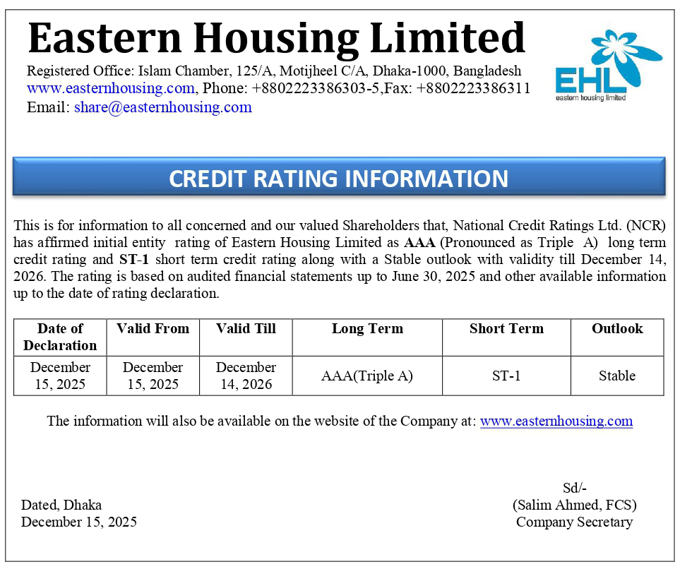 Homeপ্রাইস সেনসিটিভ ইনফরমেশনCredit Rating Information of Eastern Housing Ltd.