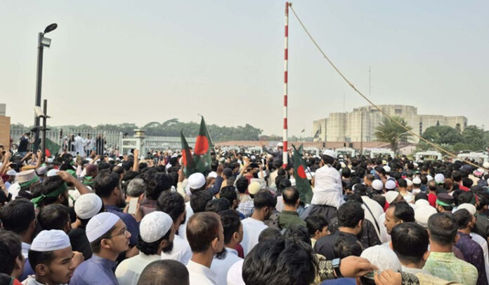 জাতীয় সংসদের দক্ষিণ প্লাজায় শনিবার (২০ ডিসেম্বর) সকাল থেকেই বিভিন্ন রাজনৈতিক দলের নেতা-কর্মী ও সাধারণ মানুষ মিছিল নিয়ে সংসদ ভবন প্রাঙ্গণে জড়ো হতে থাকেন।