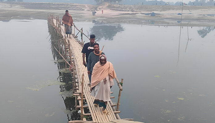 এলাকাবাসীর চলাচলের একমাত্র ভরসা বর্ষা মৌসুমে নৌকা এবং শুষ্ক মৌসুমে বাঁশের সাঁকো। নদীতে পানি কমে যাওয়ায় বিভিন্ন স্থানে চর জেগে উঠেছে। এসব স্থানে স্থানীয়ভাবে নির্মিত নড়বড়ে বাঁশের সাঁকো দিয়ে প্রতিদিন নারী, শিশু ও বয়স্করা যাতায়াত করছে। সামান্য অসতর্কতায় দুর্ঘটনার ঝুঁকি রয়েছে।