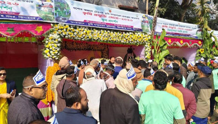 ঝিনাইদহ প্রতিনিধি: ঝিনাইদহে তিনদিন ব্যাপী কৃষি প্রযুক্তি মেলা উদ্বোধন করা হয়। উপজেলা পরিষদ চত্বরে মেলার উদ্বোধন করেন জেলা প্রশাসক আব্দুল্লাহ আল মাসউদ। মেলায় সদর উপজেলার বিভিন্ন এলাকার কৃষি উদ্যোক্তা ও তরুণ কৃষি উদ্ভাবকরা নিজ নিজ স্টল প্রদর্শন করছেন। মেলা উপলক্ষ্যে সদর উপজেলা কৃষি অফিস চত্বর থেকে বর্ণাঢ্য র্যালি বের হয়। পরে মেলা চত্বরে উদ্বোধনী সভা অনুষ্ঠিত হয়।