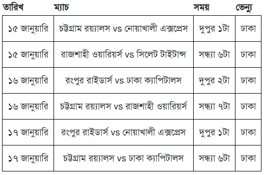 বর্তমান পয়েন্ট টেবিলে রাজশাহী ওয়ারিয়র্স ৮ ম্যাচে ৬ জয়ে ১২ পয়েন্ট নিয়ে শীর্ষে রয়েছে। চট্টগ্রাম রয়্যালস ৭ ম্যাচে ৫ জয়ে ১০ পয়েন্ট নিয়ে দ্বিতীয় স্থানে, আর সিলেট টাইটান্স আছে শীর্ষ তিনে। বাকি দলগুলোর মধ্যে রংপুর রাইডার্স, ঢাকা ক্যাপিটালস ও নোয়াখালী এক্সপ্রেস এই তিন দলের মধ্যে চতুর্থ স্থানের জন্য হাড্ডাহাড্ডি লড়াই জমে উঠবে ঢাকার পর্বে।