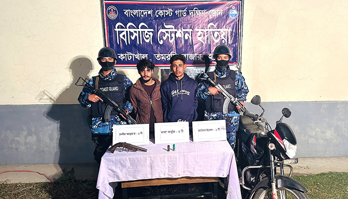 তিনি জানান, গোপন সংবাদের ভিত্তিতে গতকাল মঙ্গলবার রাত ৯টায় হাতিয়া কোস্ট গার্ড স্টেশনের একদল সদস্য উপজেলার ক্ষিরোদিয়া বলির ব্রিজ সংলগ্ন এলাকায় “অপারেশন ডেভিল হান্ট ফেজ-২”-এর আওতায় বিশেষ অভিযান চালায়। অভিযানে ১টি দেশীয় আগ্নেয়াস্ত্র ও ২ রাউন্ড তাজা কার্তুজসহ ২জনকে গ্রেপ্তার করা হয়। প্রাথমিক জিজ্ঞাসাবাদে জানা যায়, গ্রেপ্তার ব্যক্তিরা বিভিন্ন নাশকতামূলক কর্মকাণ্ডের মাধ্যমে এলাকায় জনমনে আতঙ্ক সৃষ্টি করে আসছিল। জব্দকৃত আলামতসহ গ্রেপ্তারকৃতদের বিরুদ্ধে পরবর্তী আইনানুগ ব্যবস্থা গ্রহণের জন্য হাতিয়া থানায় হস্তান্তর করা হয়েছে।