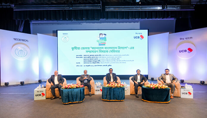 কর্পোরেট সংবাদ ডেস্ক: নগদহীন আর্থিক ব্যবস্থার প্রসারে বাংলাদেশ ব্যাংকের উদ্যোগে এবং ইউনাইটেড কমার্শিয়াল ব্যাংক পিএলসি (ইউসিবি) লিড ব্যাংক হিসেবে কুষ্টিয়ায় দিনব্যাপী ‘ক্যাশলেস বাংলাদেশ উদ্যোগ’ শীর্ষক নানা কর্মসূচির আয়োজন করা হয়েছে।