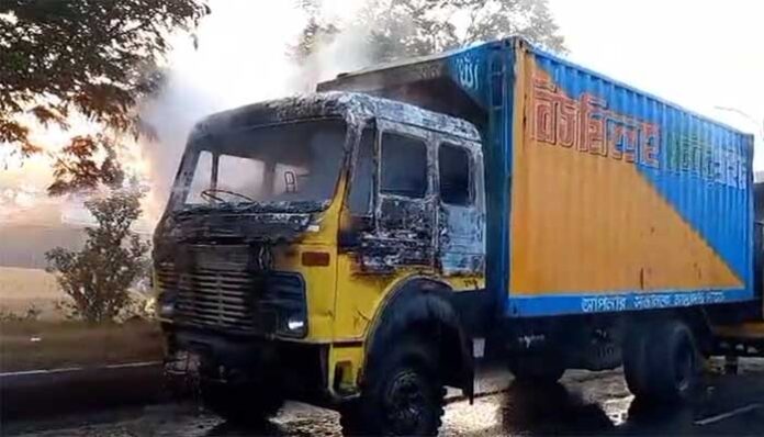 বৃহস্পতিবার ভোর ৬ টার দিকে ঢাকা ময়মনসিংহ মহাসড়কে এ আগুনের ঘটনা ঘটে।