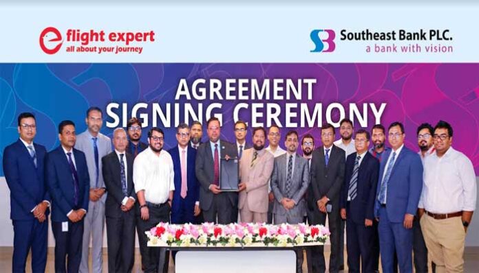 সাউথইস্ট ব্যাংক পিএলসি. এর ব্যবস্থাপনা পরিচালক নুরুদ্দিন মোঃ ছাদেক হোসাইন এবং ফ্লাইট এক্সপার্ট বিডি লিমিটেড এর ব্যবস্থাপনা পরিচালক সালমান বিন রাশিদ শাহ সায়েম নিজ নিজ প্রতিষ্ঠানের পক্ষে চুক্তি বিনিময় করেন।