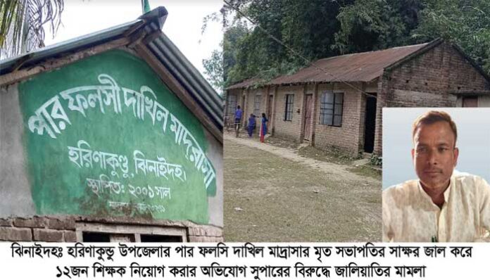 আতিকুর রহমান, ঝিনাইদহ প্রতিনিধি: মৃত মাদ্রাসা সভাপতির স্বাক্ষর জাল করে একটি মাদ্রাসায় ১২জন শিক্ষক নিয়োগের অভিযোগ উঠেছে। নিয়োগ দিয়ে প্রায় কোটি টাকার বানিজ্য করা হয়েছে।