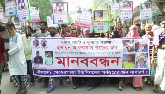 তাদের মাদক ব্যবসা ও সন্ত্রাসী কার্যকলাপে বাঁধা দেয়ায় গত ২৮ নভেম্বর এক নারীসহ ৩ জন গ্রামবাসীকে কুপিয়ে জখম করে মাদক কারবারিরা৷ এ ঘটনায় স্থানীয় মাদক ব্যবসায়িদের মূল হোতা মো. হুমায়ুন ও ফয়সাল মিয়া সহ ২০ জনের নামে মামলা হলেও তাদের গ্রেপ্তার করা হয়নি। এতে সন্ত্রাসী চক্রটি আরও বেপরোয়া হয়ে উঠেছে। অবিলম্বে অভিযুক্ত সন্ত্রাসী চক্রকে গ্রেপ্তার করে মাদক-সন্ত্রাসের আগ্রাসন বন্ধের দাবি জানানো হয় মানববন্ধনে।